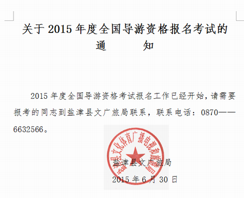 2015年全國導游人員資格考試(云南考區)有關工作的通知