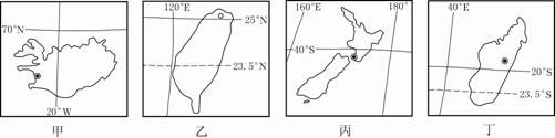 21.圖4表示甲、乙、丙、丁四個(gè)國(guó)家的人口出生率與死亡率。其中反映人口高出生率、低死亡率、高自然增長(zhǎng)率特點(diǎn)的國(guó)家是