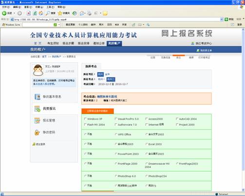 若是按場次報名,則會出現有場次的考試日期,選擇日期后會出現如下圖所示界面: