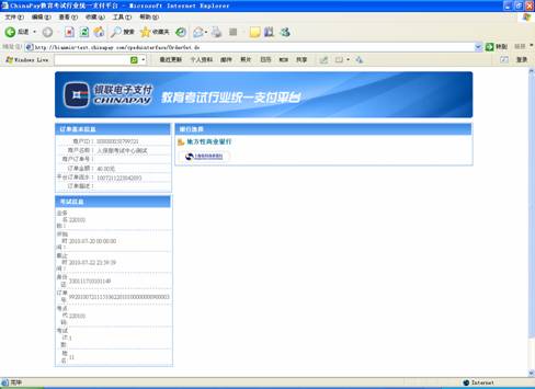 點擊“立即進入網上銀行在線繳費”,切換到銀行繳費界面,如下圖: