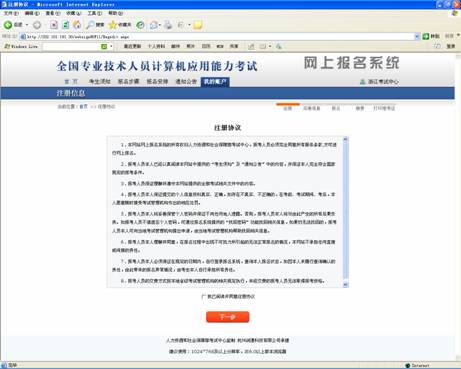 選擇“我已閱讀并同意注冊協議”前的選擇框,然后點擊“下一步”按鈕,出現如下圖所示界面: