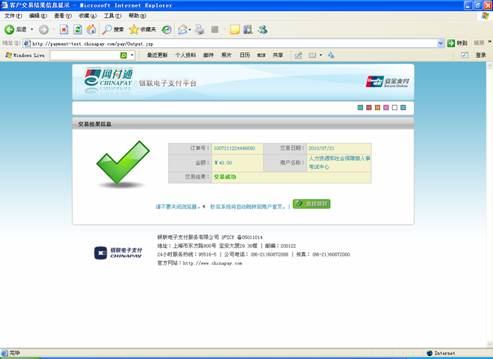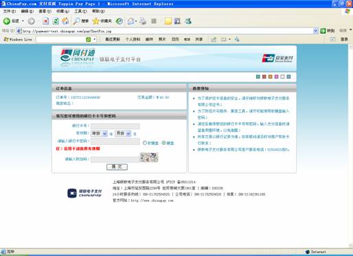 輸入銀行卡號、密碼、附加碼,點擊“提交”出現如下圖所示界面: