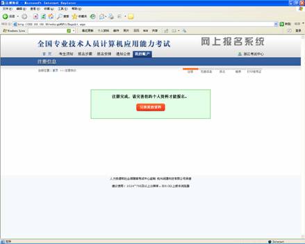 輸入身份證號、確認身份證號、姓名、密碼、確認密碼、電子郵箱(用于找回密碼)、驗證碼,點擊“提交注冊”,出現如下圖所示界面: