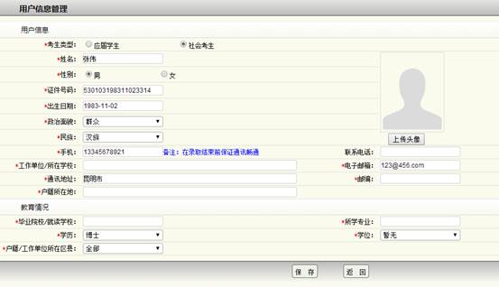 2、進入資料維護根據自身個人信息,仔細填報各個帶*號的必填項。對于應屆畢業生,學位可以填暫無和教師資格欄設有應屆畢業生正在辦理一欄;對于社會考生,需要填寫相關的資格和編號。