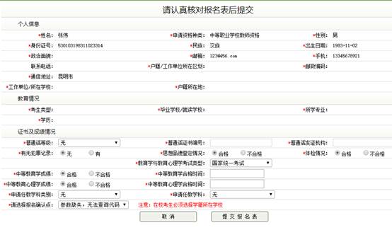 注:請考生務必仔細核對所選教師資格等級及相應縣區