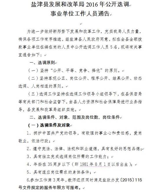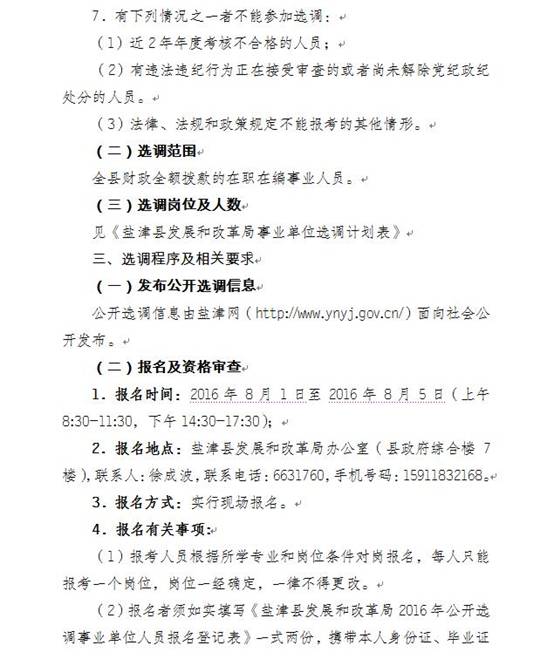 閱讀全文 昭通市鹽津縣發改局2016年選調事業單位人員通告
