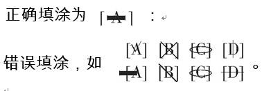 ●必須按照正確填涂要求進行填涂,以保證涂點面積達到規定要求使計算機能正確識別。填涂面積過小,或過于偏斜,均導致計算機不能正確識別。比如與下面錯誤填涂示例相類似的填涂都是錯誤的;