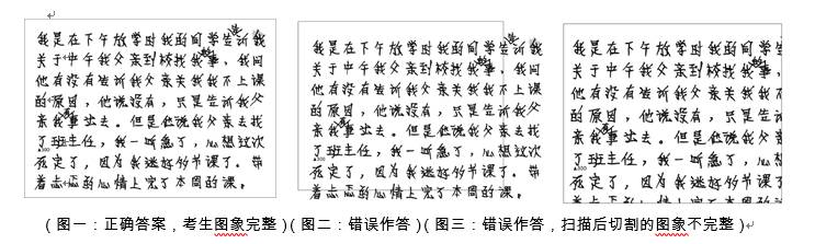 (圖一:正確答案,考生圖象完整)(圖二:錯誤作答)(圖三:錯誤作答,掃描后切割的圖象不完整)