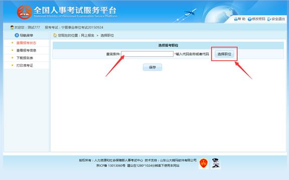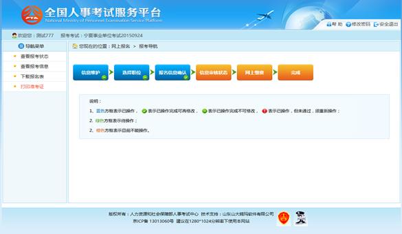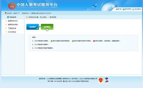 選擇相應的職位,點擊“保存”按鈕,提示保存成功,跳轉(zhuǎn)到報考流程頁面,如下圖所示: