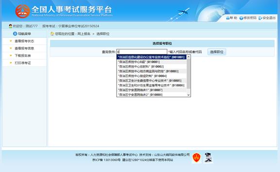 點擊“選擇職位”選項,可以跳轉(zhuǎn)到選擇報考職位界面,如下圖所示: