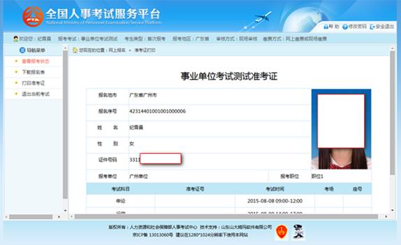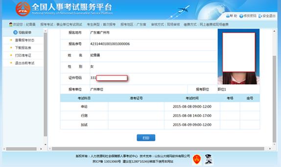 通過點擊系統(tǒng)導航菜單的“打印準考證”選項,可進入準考證打印頁面,如下圖所示: