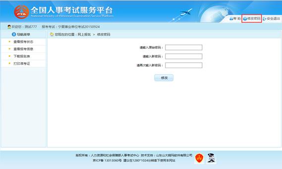 點擊系統(tǒng)右上角的“修改密碼”選項,可跳轉(zhuǎn)到修改密碼頁面,如下圖所示: