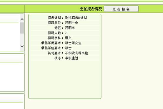 如果審核沒有通過,需要查看駁回原因。此時可以根據駁回原因進行修正,并選擇該計劃下的崗位進行重新報名或者刪除該報名崗位,點擊“開始報名”,重新報名該計劃或者其他計劃。