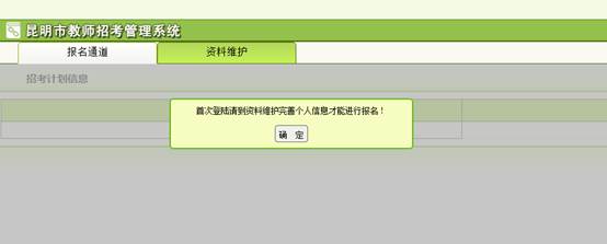 2、對于首次登陸的用戶,系統會提示補充完善個人資料信息。必須填寫完善資料,否則無法報名。