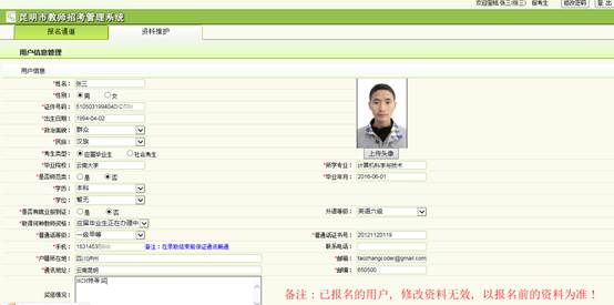 如果審核通過,狀態一欄會進行顯示,如果此時修改個人資料,對之前審核通過的報名無效。