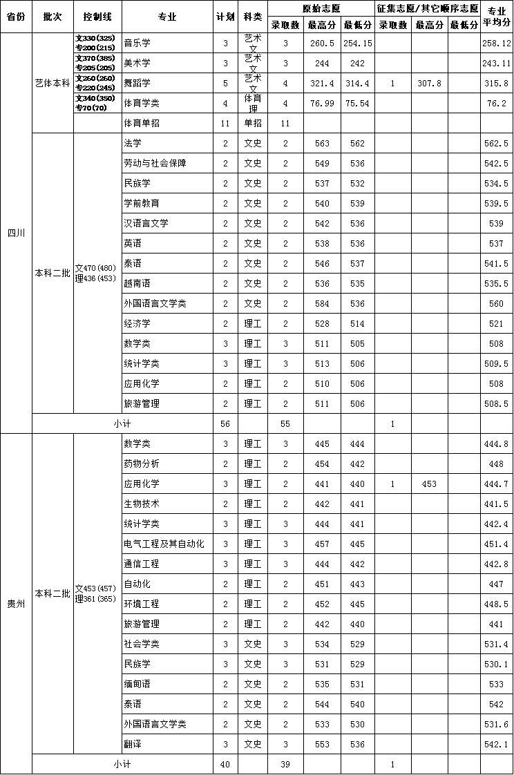 2022年云南民族大學(xué)出省本科及預(yù)科招