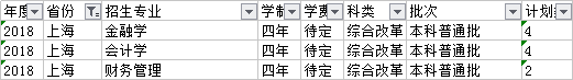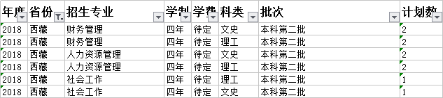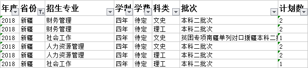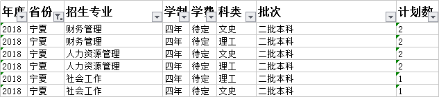 云南財經大學2018年本科分省招生計劃表(內蒙古、寧夏、青海、上海、西藏、新疆)