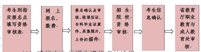 考生報名資格審核由畢業院校完成,考生只能填報與本人專科所學專業相同或相近的招生專業,考生志愿專業由專升本招生院校網上審定。考生所報志愿被招生院校審核否決的,報名確認點應及時告知考生到報名確認點進行志愿修改。考生無對應相同或相近專業報考的,由畢業院校、專升本招生院校做好學生的解釋說明工作。