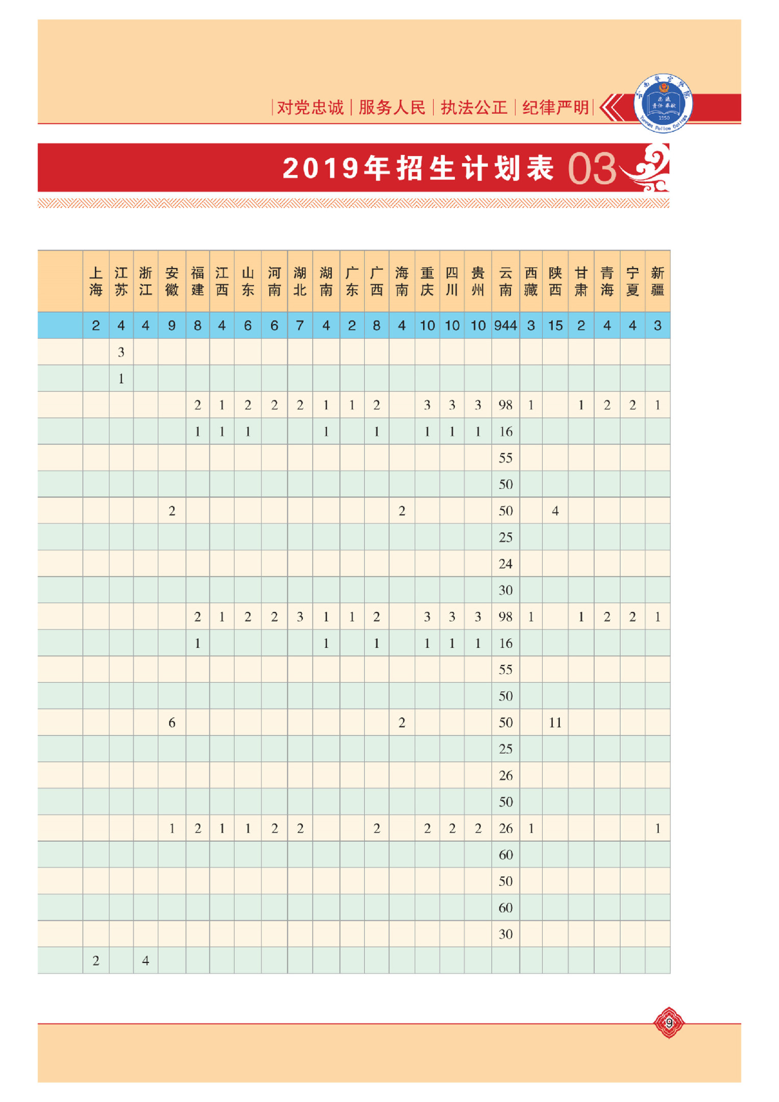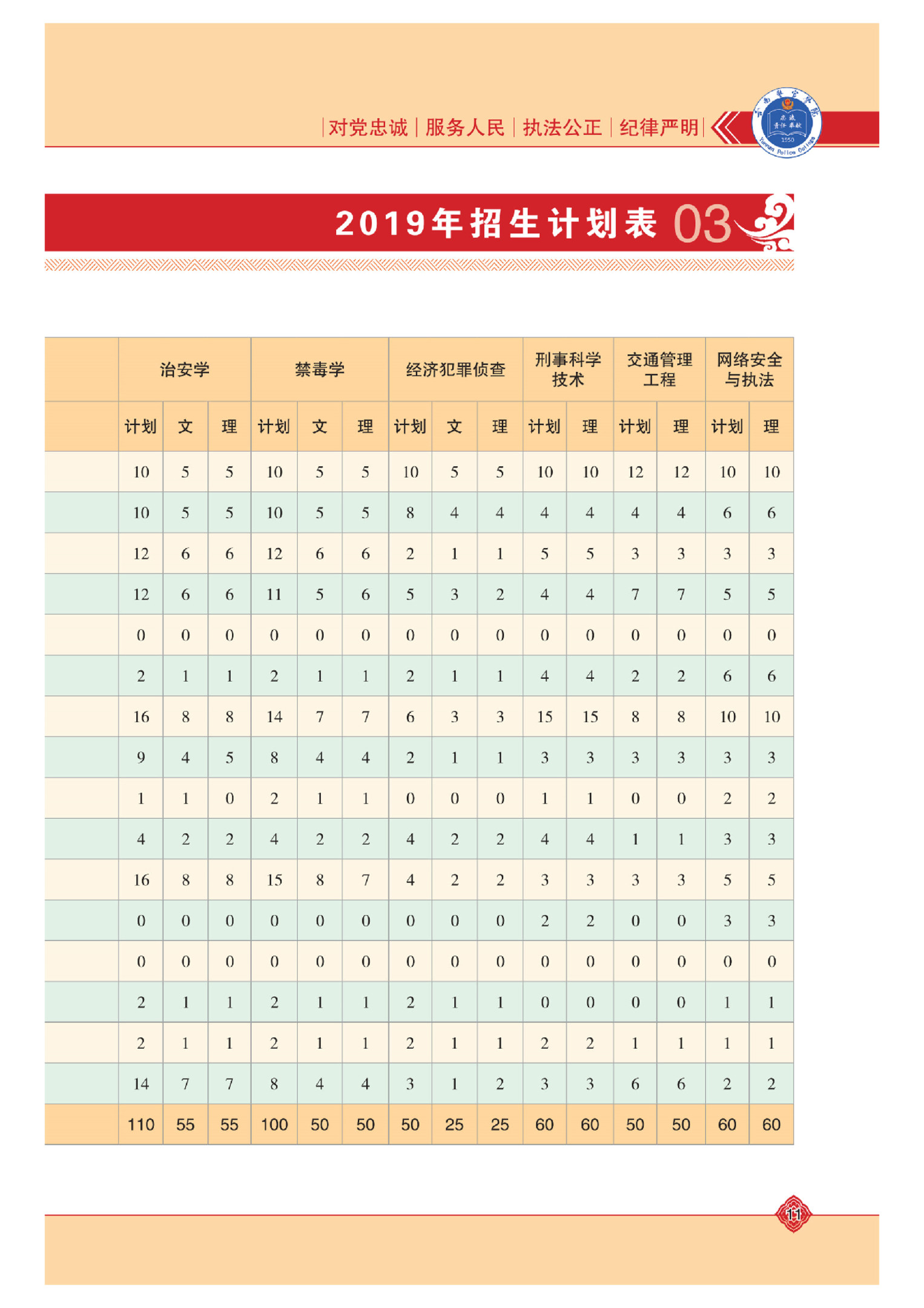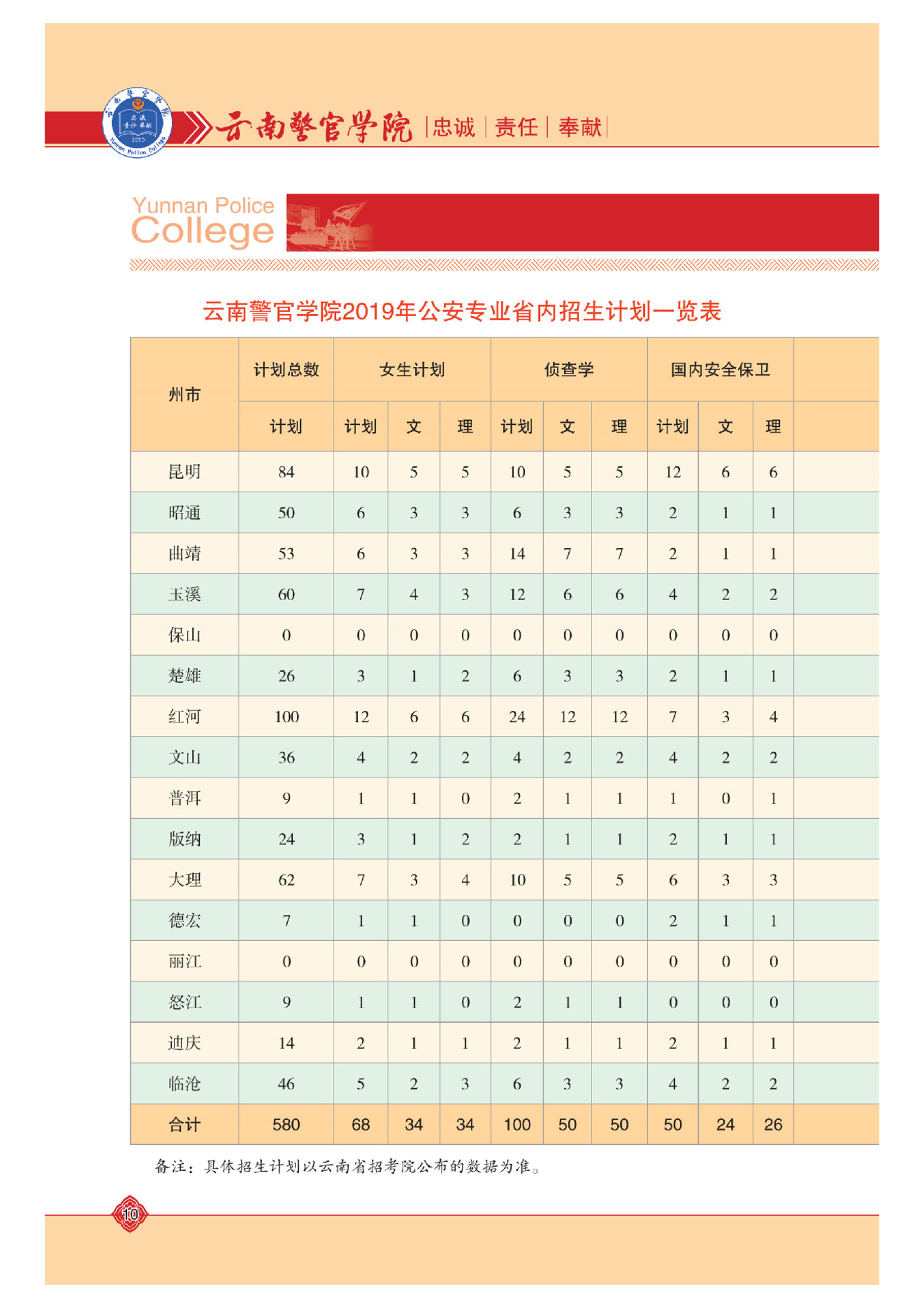云南警官學(xué)院2019年本科分省專業(yè)招生計(jì)劃一覽表