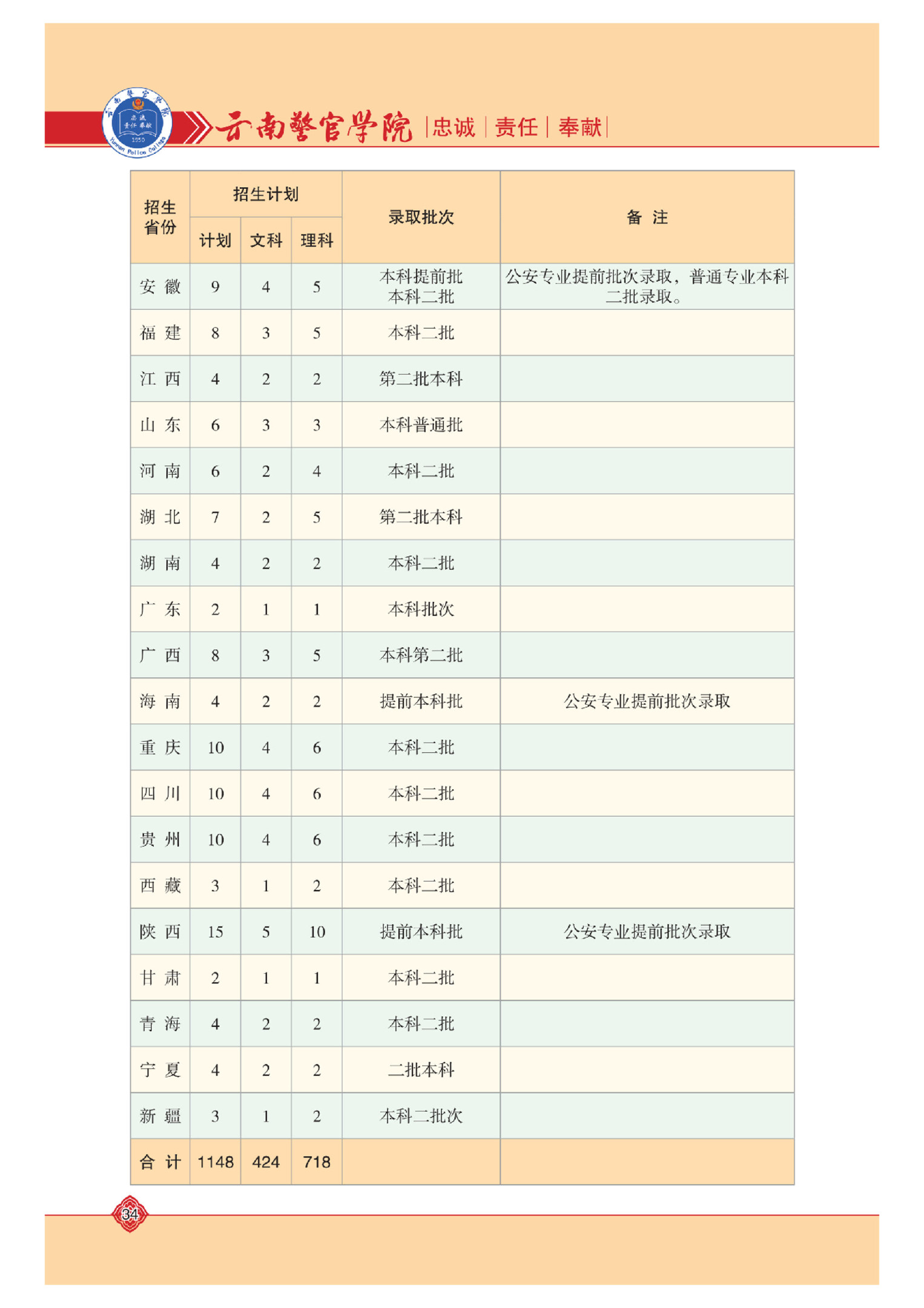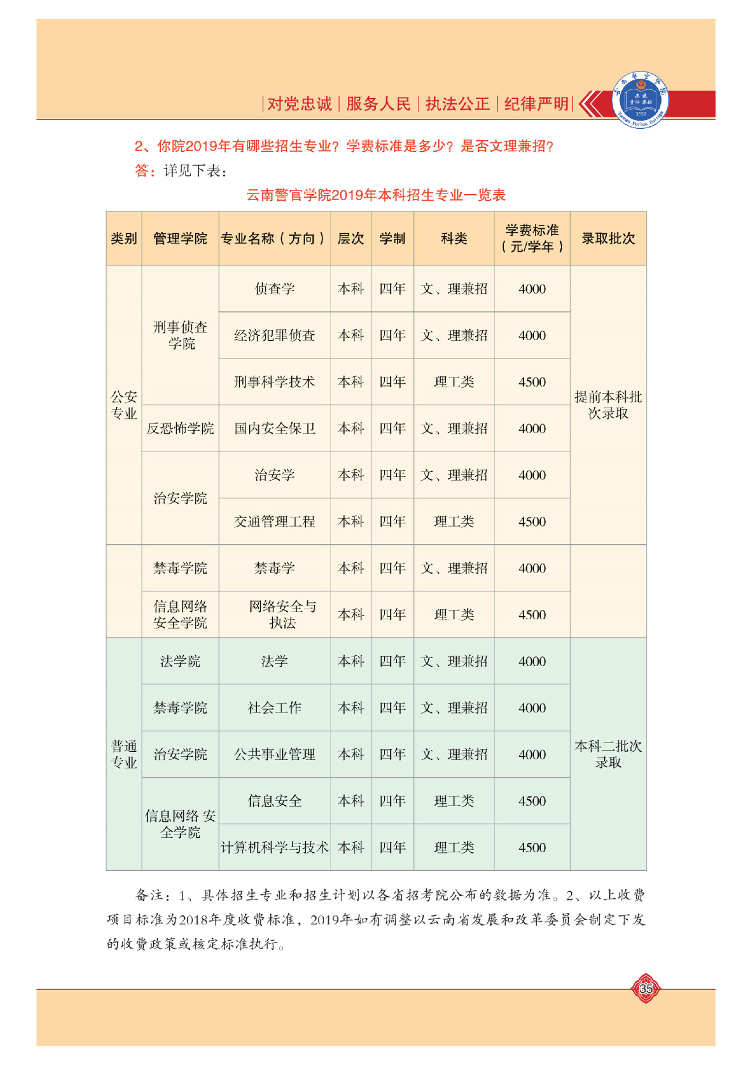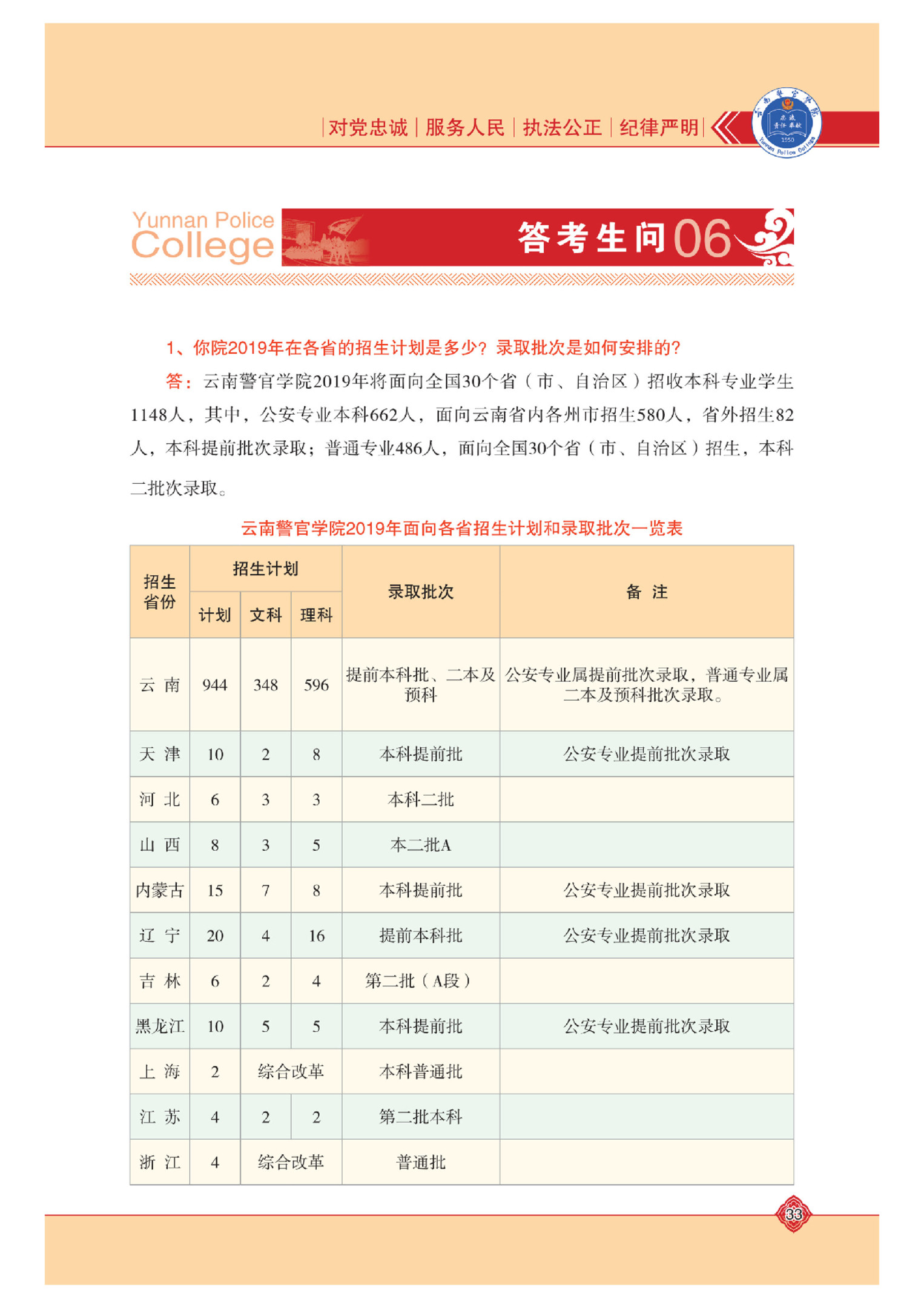 云南警官學(xué)院2019年本科分省專業(yè)招生計(jì)劃一覽表