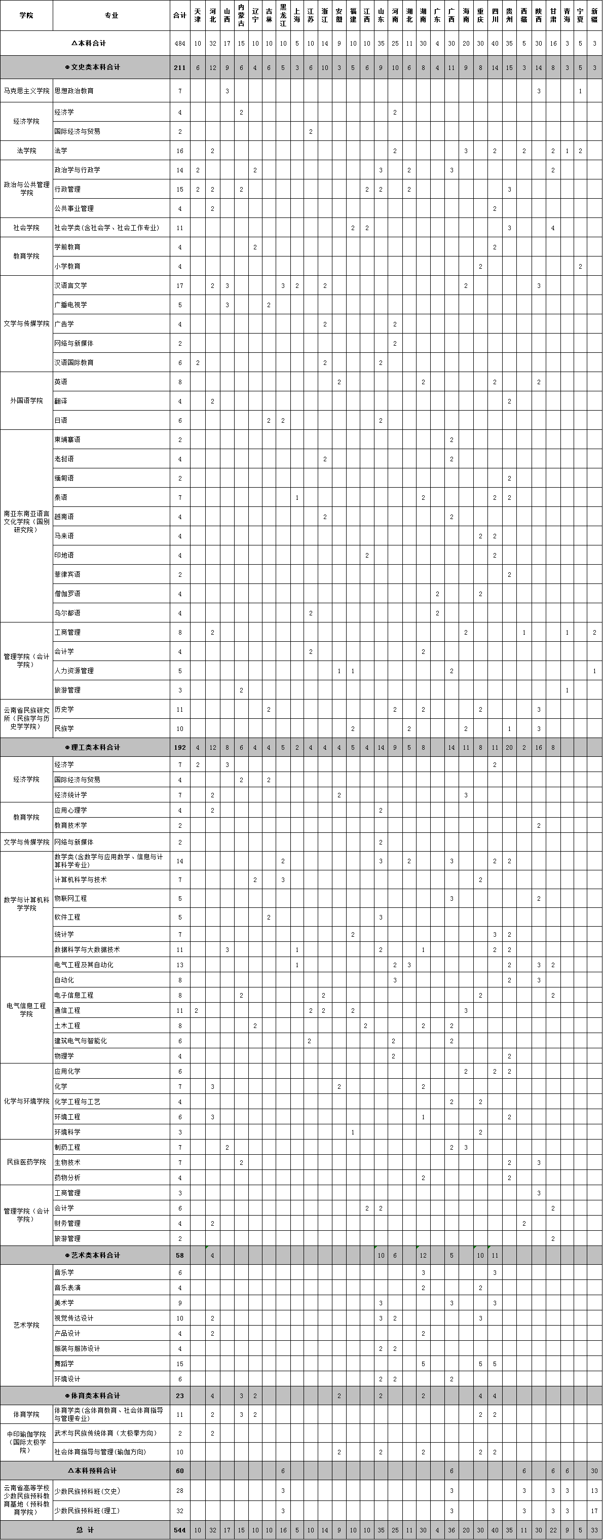 云南民族大學2019年省外普高招生計劃