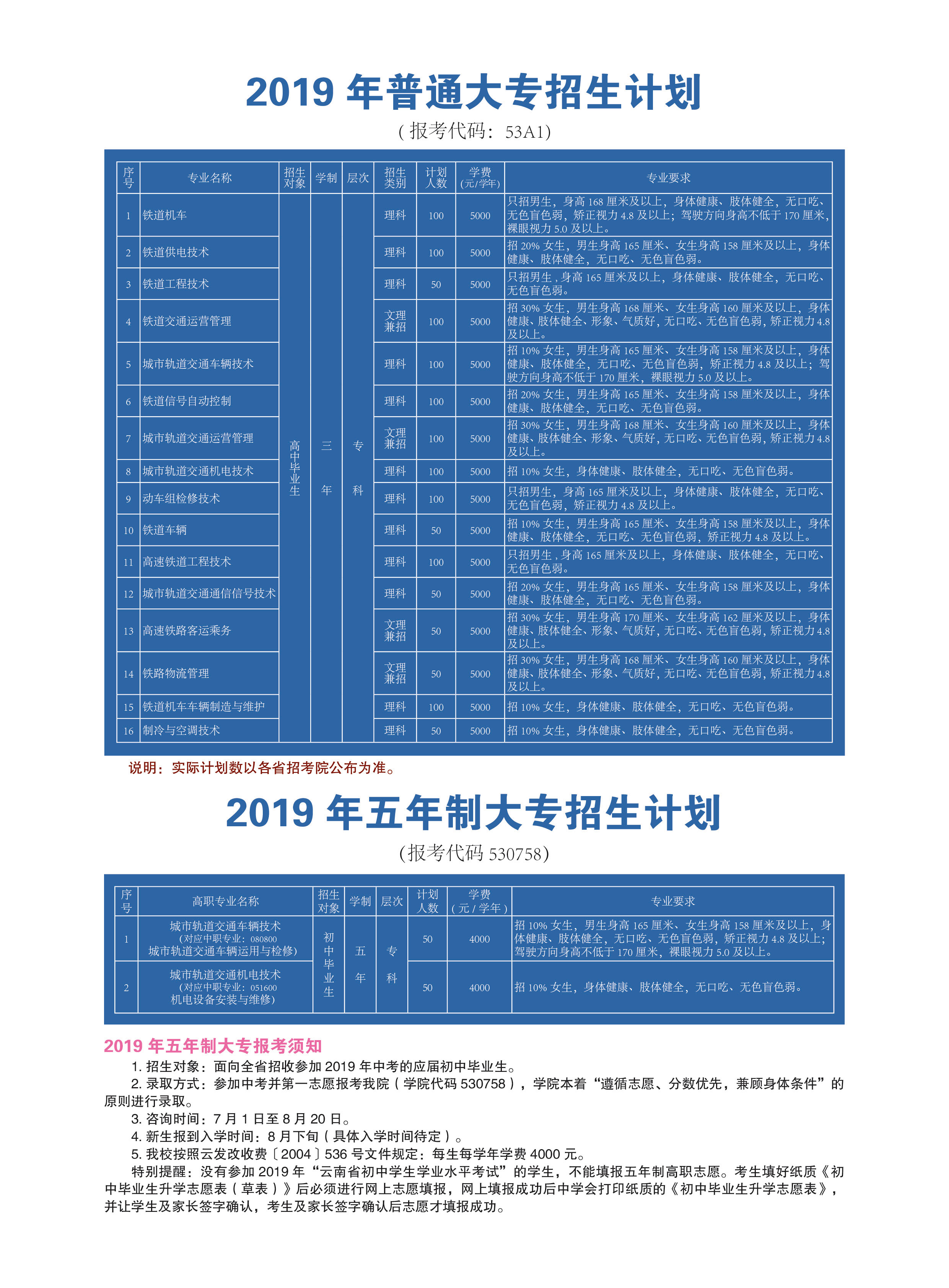 昆明鐵道職業技術學院2019年招生簡章