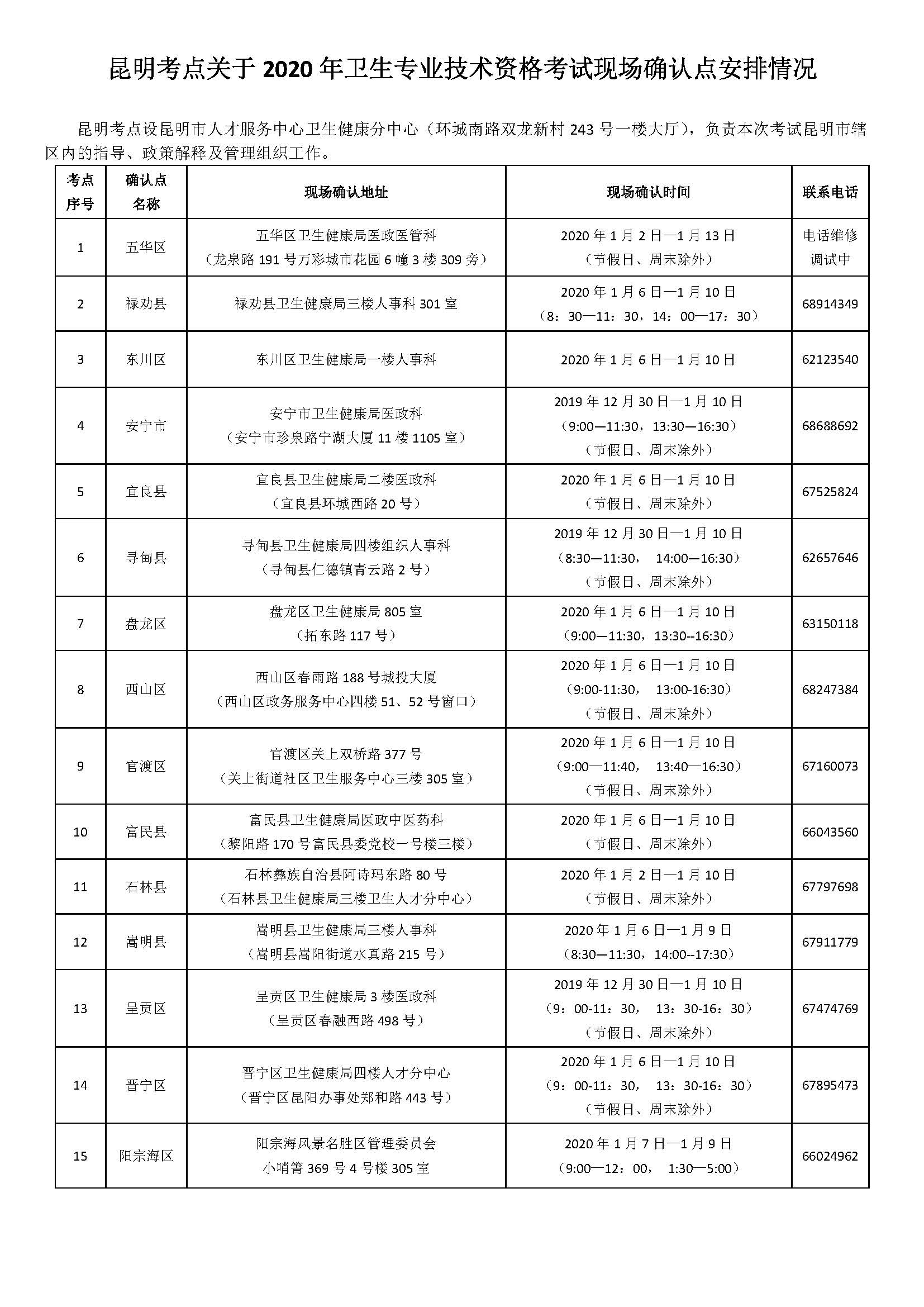 昆明考點(diǎn)關(guān)于2020年衛(wèi)生專業(yè)技術(shù)資格考試現(xiàn)場(chǎng)確認(rèn)點(diǎn)安排情況