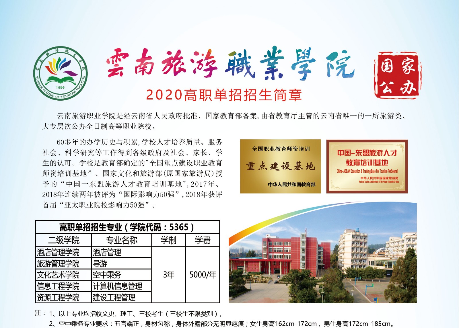 閱讀全文 云南旅游職業學院2020高職單招招生簡章