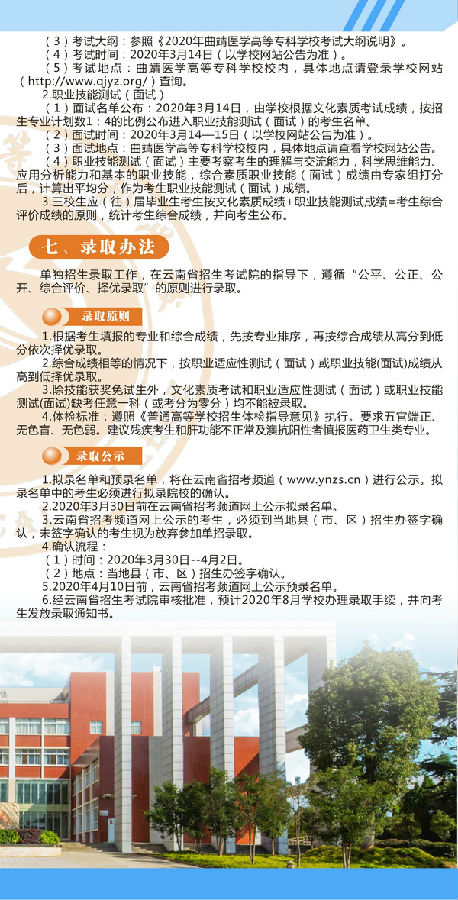 閱讀全文 2020年曲靖醫學高等專科學校單獨考試招生簡章