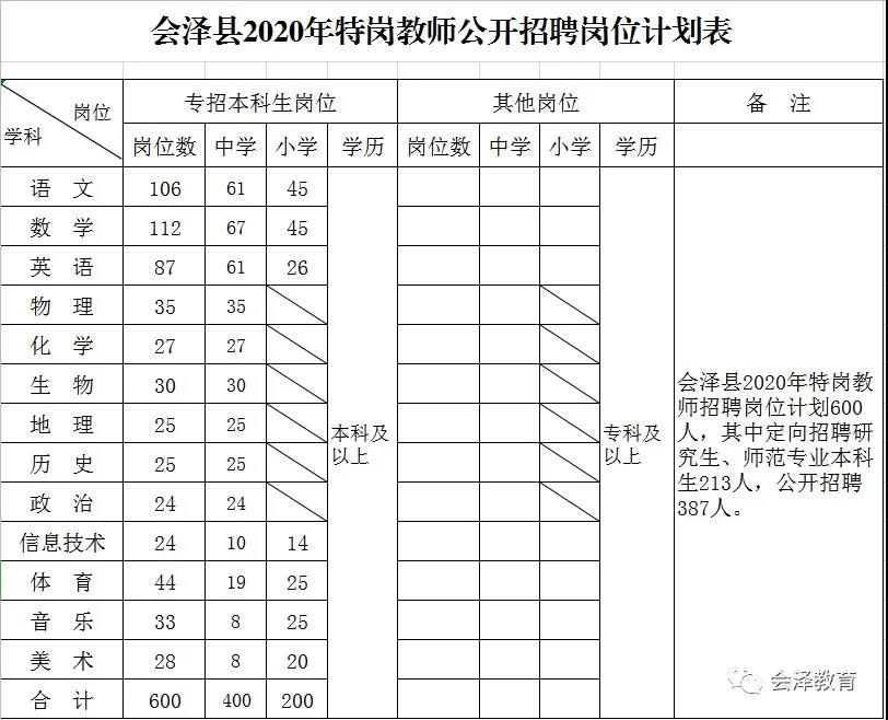 附件:會(huì)澤縣2020年特崗教師公開(kāi)招聘崗位計(jì)劃表