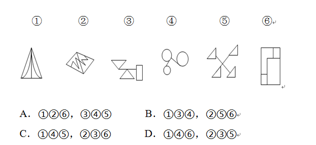 例題:把下面的六個圖形分為兩類,使每一類圖形都有各自的共同特征或規律,分類正確的一項是: