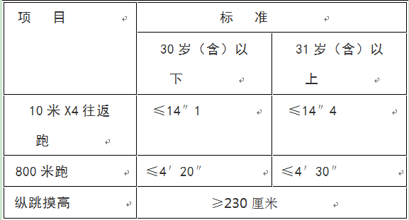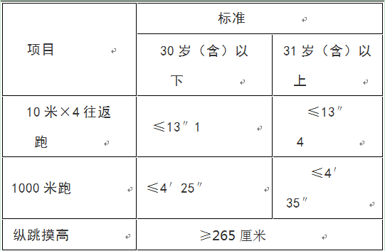 公安機關錄用人民警察體能測評項目和標準(暫行)