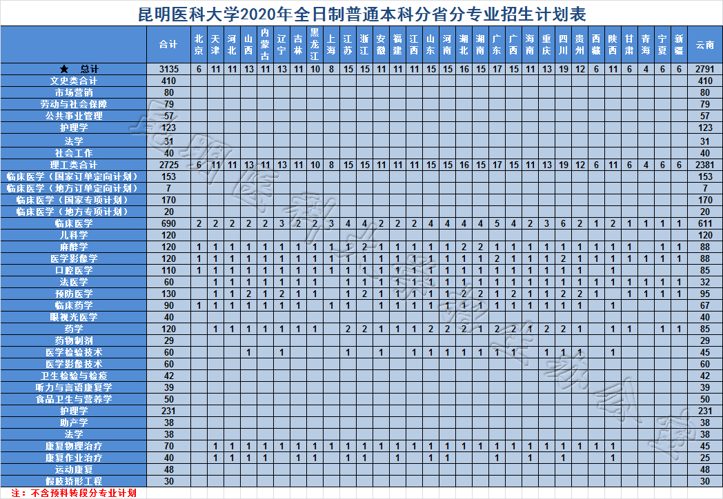 閱讀全文 昆明醫科大學2020年本科招生計劃