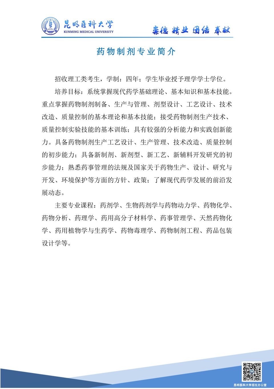 昆明醫科大學2020年招生專業介紹--藥物制劑