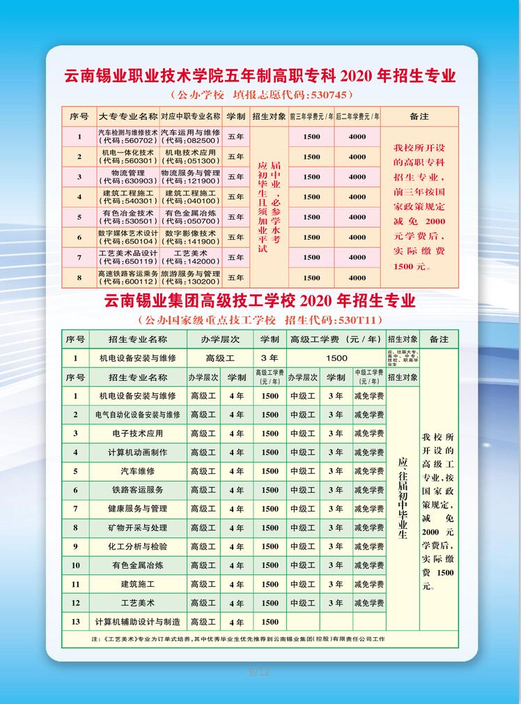 附件【云南錫業職業技術學院五年制高職專科、云南錫業集團高級技工學校2020年招生簡章.pdf】