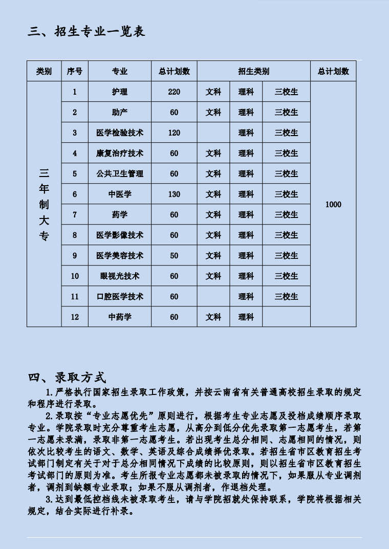 2020年昭通衛生職業學院招生簡章