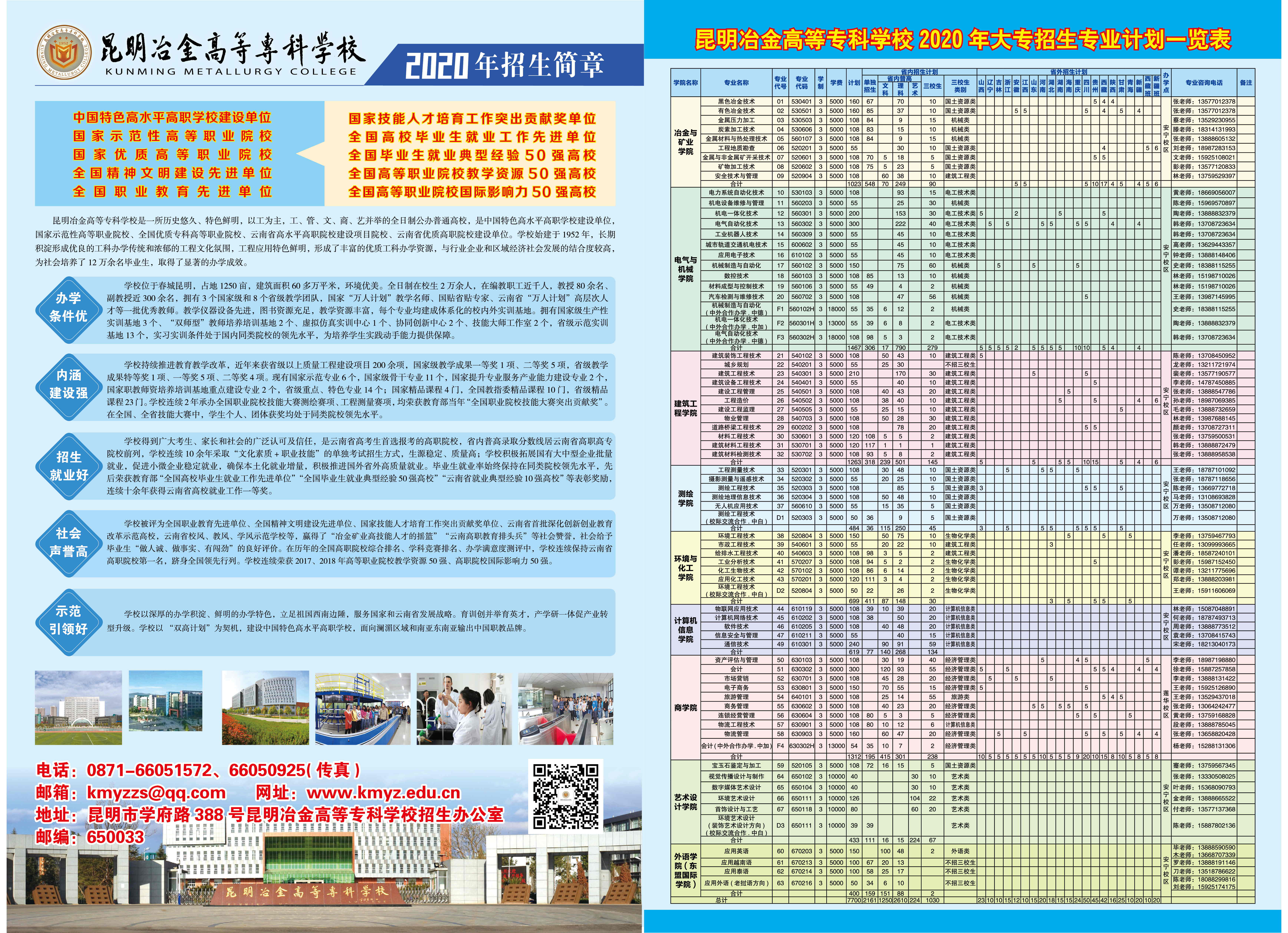 2020年昆明冶金高等專科學(xué)校大專招生簡章