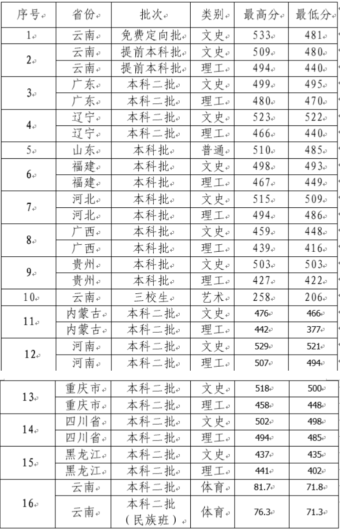截止到9月1日17時,滇西應用技術大學已完成云南省免費定向批次、云南省提前本科批次和廣東省、遼寧省、山東省、福建省、河北省、廣西壯族自治區、貴州省本科批次云南省三校生本科批次、內蒙古自治區、河南省、重慶市、四川省、黑龍江省和云南省體育類本科批次錄取。